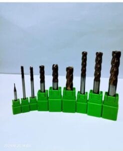 Description: CNC carbide end mills, various diameters and lengths, 55 HRC