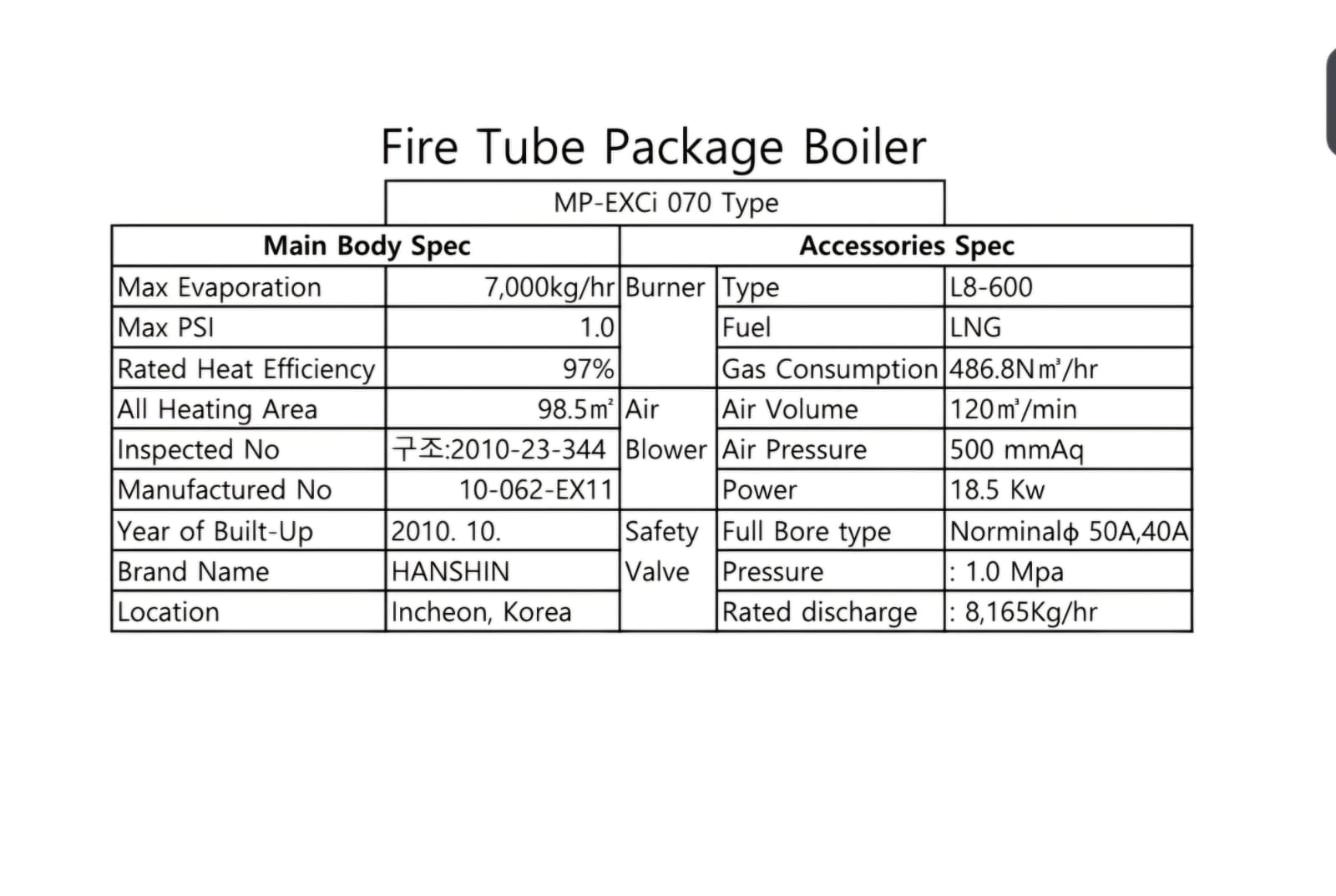 Equipment information: